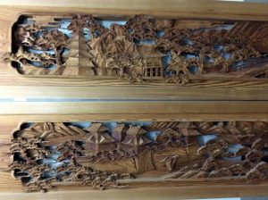浜松市にて 欄間 作者不明 松 城 橋 船 一対 2個セットを出張買取させていただきました。