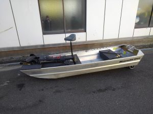 浜松市にて、免許不要 アルミボート ジョンボート 10ft Bandit1044 フラットデッキ付を出張買取させていただきました。